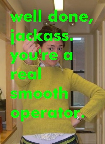 It’s 2003. Our (now happily-married) heroine goes on a few dates with a diminutive, wishy-washy stand-up comic with commitment issues. Things seem to be going well, and then, without warning, she is artlessly and unceremoniusly ditched by the fumbly microcomedian. And below, the narrative speaks for itself.